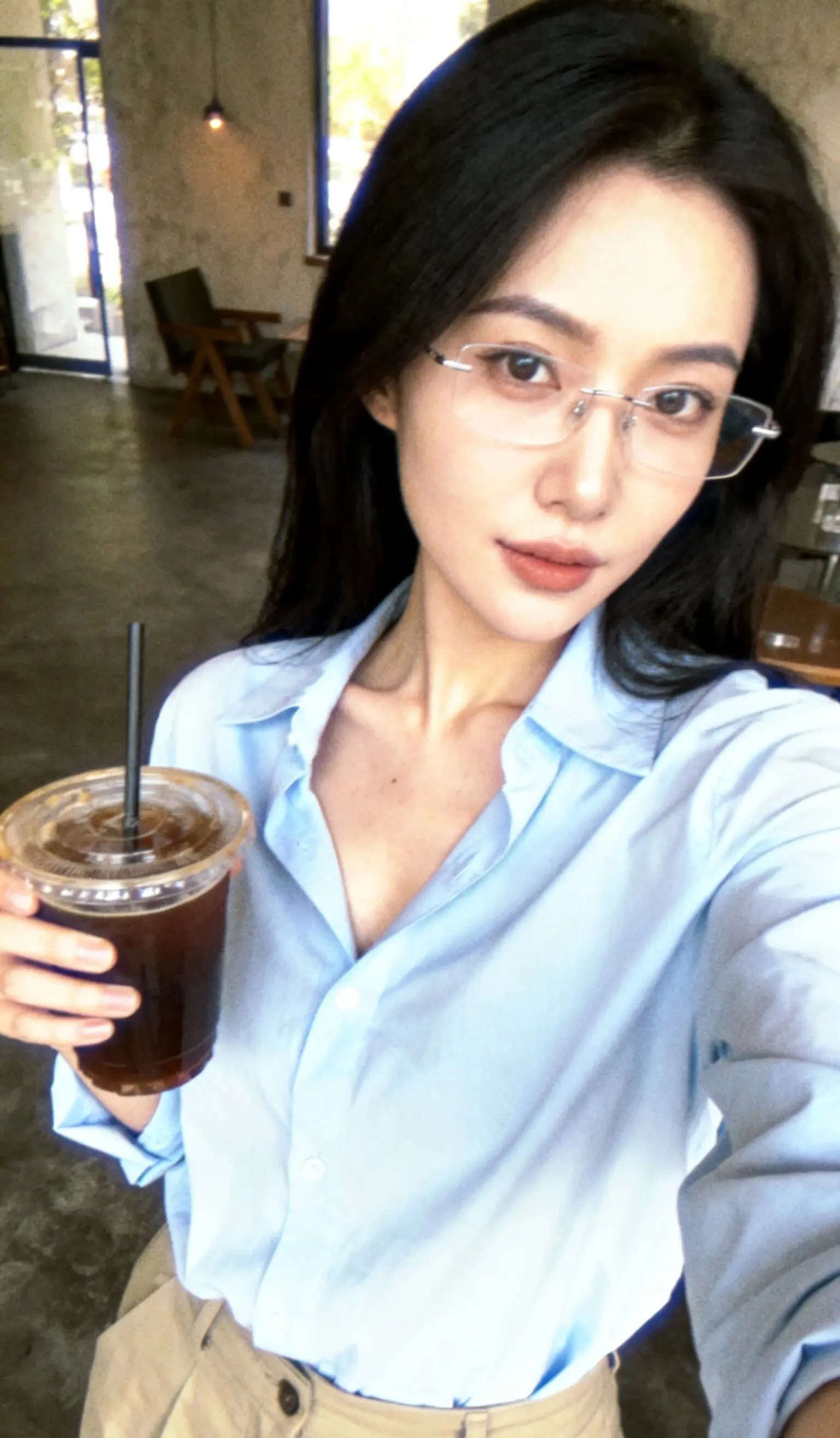 经过咖啡店玻璃窗时